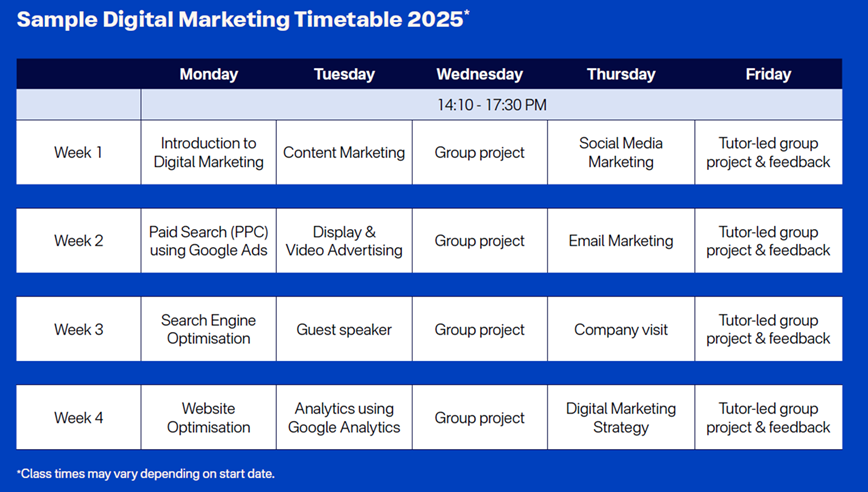 ทุกโปรแกรมมีระยะเวลาของการลงทะเบียนเรียนให้เลือกดังนี้: 4 Weeks, 12 Weeks, 24 Weeks, 36 Weeks และ 48 Weeks.